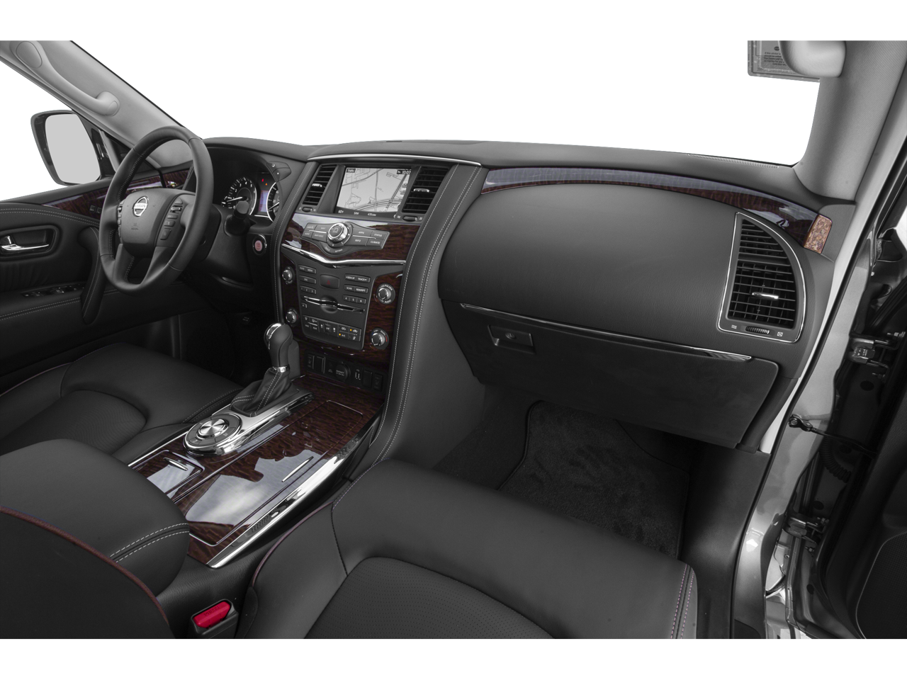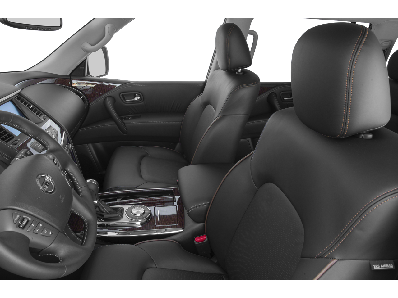 4WD, 13 Speakers, 20 Painted Alloy Wheels, 3rd Row Carpeted Floor Mats - Bench Seat, 3rd row seats: split-bench, 4-Wheel Disc Brakes, ABS brakes, Air Conditioning, Alloy wheels, AM/FM radio: SiriusXM, Anti-whiplash front head restraints, Auto tilt-away steering wheel, Auto-dimming door mirrors, Auto-dimming Rear-View mirror, Auto-leveling suspension, Automatic temperature control, Axle Ratio: 2.94, Brake assist, Bumpers: body-color, CD player, Delay-off headlights, Driver door bin, Driver vanity mirror, Dual front impact airbags, Dual front side impact airbags, DVD-Audio, Electronic Stability Control, Emergency communication system: NissanConnect Services, Exterior Parking Camera Rear, Four wheel independent suspension, Front anti-roll bar, Front Bucket Seats, Front Center Armrest, Front dual zone A/C, Front fog lights, Front reading lights, Fully automatic headlights, Garage door transmitter: HomeLink, Heated door mirrors, Heated Front Bucket Seats w/Power Driver's Memory, Heated front seats, Illuminated entry, Leather Shift Knob, Leather-Appointed Seat Trim, Low tire pressure warning, Memory seat, Navigation System, Occupant sensing airbag, Outside temperature display, Overhead airbag, Overhead console, Panic alarm, Passenger door bin, Passenger vanity mirror, Power door mirrors, Power driver seat, Power Liftgate, Power passenger seat, Power steering, Power windows, Radio data system, Radio: AM/FM/SXM/CD/MP3/HD, Rain sensing wipers, Rear air conditioning, Rear anti-roll bar, Rear reading lights, Rear seat center armrest, Rear window defroster, Rear window wiper, Reclining 3rd row seat, Remote keyless entry, Security system, Speed control, Speed-sensing steering, Speed-Sensitive Wipers, Split folding rear seat, Spoiler, Steering wheel memory, Steering wheel mounted audio controls, Tachometer, Telescoping steering wheel, Tilt steering wheel, Traction control, Trip computer, Turn signal indicator mirrors, Variably intermittent wipers, Voltmeter, 4WD.