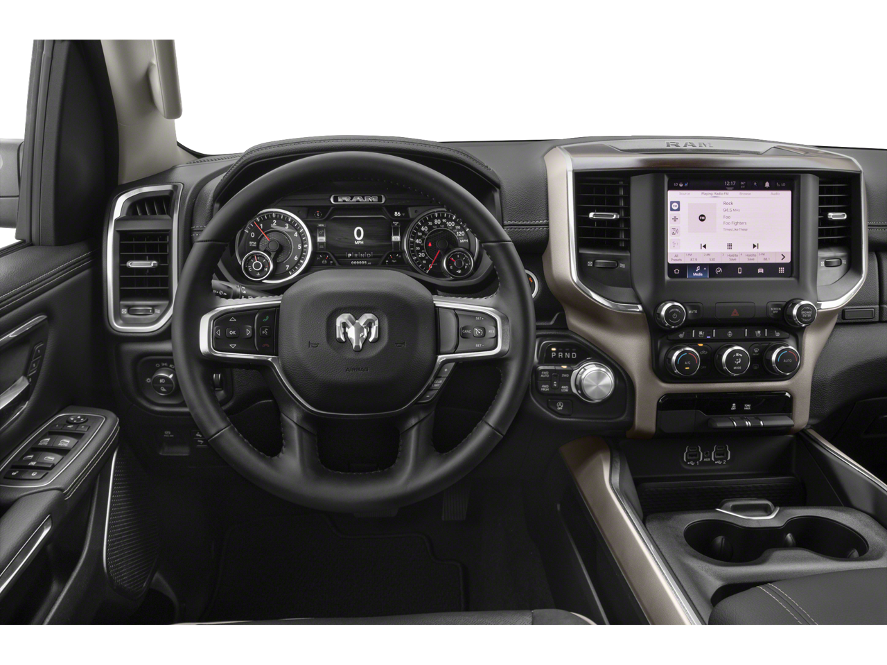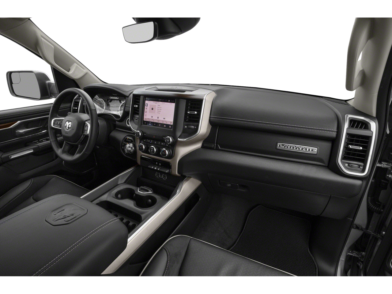#1 Seat Foam Cushion, 10 Speakers, 12 Touchscreen Display, 2nd Row In Floor Storage Bins, 3 Rear Seat Head Restraints, 33 Gallon Fuel Tank, 4 Way Front Headrests, 4-Wheel Disc Brakes, 48V Belt Starter Generator, 4G LTE Wi-Fi Hot Spot, 8.4 Touchscreen Display, ABS brakes, Adjustable pedals, Air Conditioning, All Plant-Installed Decals, All R1 High Radios, All Radio Equipped Vehicles, Alloy wheels, AM/FM radio: SiriusXM, Anti-Spin Differential Rear Axle, Apple CarPlay, Apple CarPlay/Android Auto, Audio memory, Auto High Beam Headlamp Control, Auto-dimming door mirrors, Auto-Dimming Exterior Driver Mirror, Auto-dimming Rear-View mirror, Automatic temperature control, Black Interior Accents, Body Color Door Handles, Body Color Exterior Mirrors, Body Color Front Bumper, Body Color Premium Power Mirrors, Body Color Rear Bumper w/Step Pads, Brake assist, Bucket Seats, Bumpers: chrome, Chrome Exterior Mirrors, Compass, Connected Travel & Traffic Services, Connectivity - US/Canada, Convex Wide-Angle Mirror Insert, Delay-off headlights, Delete LED Lamp - Floor Console Bin, Disassociated Touchscreen Display, Dome Dual LED Reading Lamp, Driver door bin, Driver Seat Memory, Driver vanity mirror, Dual front impact airbags, Dual front side impact airbags, Dual-Pane Panoramic Sunroof, Electronic Stability Control, Exterior Mirrors Courtesy Lamps, Exterior Mirrors w/Heating Element, Exterior Mirrors w/Memory, Exterior Mirrors w/Supplemental Signals, Foam Bottle Insert (Door Trim Panel), For Details, Visit DriveUconnect.com, For More Info, Call 800-643-2112, Front anti-roll bar, Front Center Armrest w/Storage, Front dual zone A/C, Front fog lights, Front reading lights, Front Seat Back Map Pockets, Front wheel independent suspension, Full Length Upgraded Floor Console, Fully automatic headlights, Garage door transmitter, Global Telematics Box Module (TBM), Google Android Auto, GPS Antenna Input, GPS Navigation, Grille Surround 3 Body Color Tex 2 Black, HD Radio, Heated door mirrors, Heated Front Seats, Heated front seats, Heated Steering Wheel, Heated steering wheel, Heavy-Duty Engine Cooling, Illuminated entry, Integrated Center Stack Radio, Integrated Voice Command w/Bluetooth®, Laramie Level A Equipment Group (DISC), Leather steering wheel, Leather Trim 40/20/40 Bench Seat, Leather Trimmed Bucket Seats, LED Dome/Reading Lamp, Low tire pressure warning, Memory seat, MOPAR Front & Rear Rubber Floor Mats, Occupant sensing airbag, Outside temperature display, Overhead airbag, Overhead console, Panic alarm, ParkSense Front/Rear Park Assist w/Stop, ParkView Rear Back-Up Camera, Passenger door bin, Passenger vanity mirror, Pedal memory, Power 2-Way Driver Lumbar Adjust, Power 2-Way Passenger Lumbar Adjust, Power 8-Way Driver & Passenger Seats, Power door mirrors, Power driver seat, Power passenger seat, Power steering, Power windows, Power-Folding Mirrors, Quick Order Package 27H Laramie, Radio data system, Radio: Uconnect 5 Nav w/12.0 Display, Radio: Uconnect 5 W w/8.4 Display, Rain Sensitive Windshield Wipers, Rear 60/40 Folding Seat, Rear 60/40 Folding Split Recline Seat, Rear anti-roll bar, Rear seat center armrest, Rear step bumper, Rear window defroster, Remote keyless entry, Remote Tailgate Release, Security system, SiriusXM Radio Service, SiriusXM w/360L, Speed control, Split folding rear seat, Sport Appearance Package, Sport Decal, Sport Performance Hood, Steering wheel mounted audio controls, Tachometer, Telescoping steering wheel, Tilt steering wheel, Traction control, Trailer Brake Control, Trip computer, Turn signal indicator mirrors, Twill Film Appliques, USB Host Flip, Variably intermittent wipers, Ventilated Front Seats, Ventilated front seats, Voltmeter, Wheels: 18 x 8 Aluminum Base Painted, Wheels: 20 x 9 Premium Painted w/Inserts.