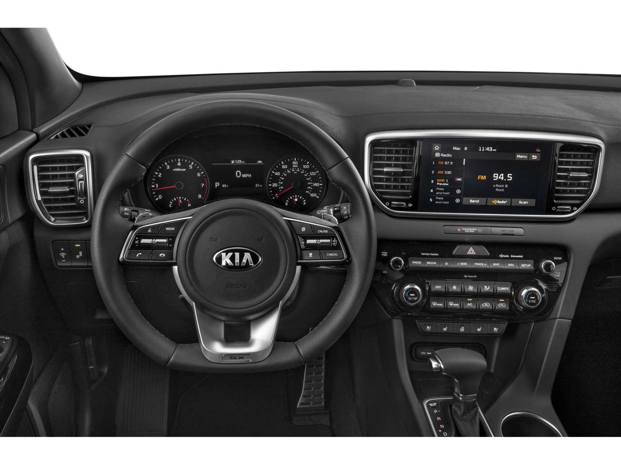 - Radio: AM/FM/MP3 Premium Audio System -inc: 320 Watts, 8" touchscreen, UVO link, navigation, harman/kardon sound system, 8 speakers including subwoofer and tweeters, Clari-Fi digital audio restoration, SiriusXM satellite radio, additional USB port, Bluetooth® wireless technology, voice control, Android Auto and Apple CarPlay