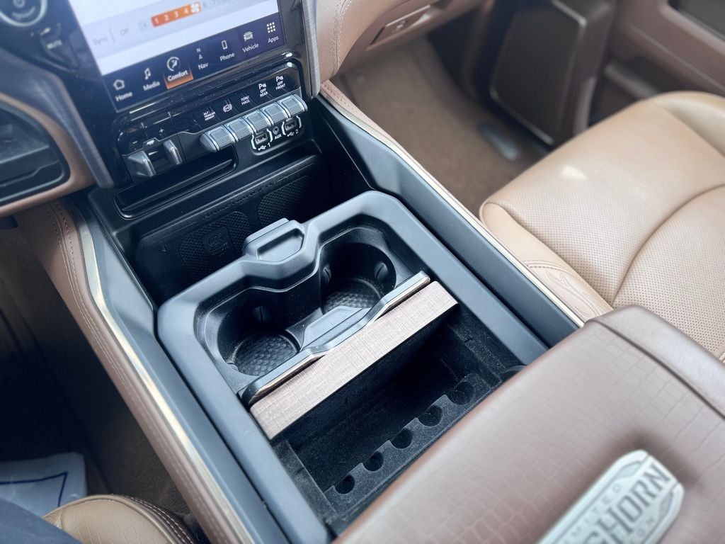 3500 Laramie Longhorn, 4D Crew Cab, Cummins 6.7L I6 Turbodiesel, 6-Speed Automatic, RWD, Delmonico Red Pearlcoat, Lt Mountain Brown/Brown Leather, 10 Speakers, 115V Auxiliary Rear Power Outlet, 12 Touchscreen Display, 17 Speaker harman kardon Premium Sound, 2 Way Rear Headrest Seat, 220 Amp Alternator, 3.73 Axle Ratio, 4 Way Front Headrests, 4-Wheel Disc Brakes, 4G LTE Wi-Fi Hot Spot, 5th Wheel/Gooseneck Towing Prep Group, 8.4 Touchscreen Display, ABS brakes, Active Noise Control System, Adaptive Cruise Control w/Stop, Adaptive Steering System, Adjustable pedals, Air Conditioning, Air Suspension Decal, Alexa Built-In, All R1 High Radios, All Radio Equipped Vehicles, Alloy wheels, AM/FM radio: SiriusXM with 360L, Apple CarPlay, Apple CarPlay/Android Auto, Audio memory, Auto High-beam Headlights, Auto Level Rear Air Suspension, Auto-dimming Rear-View mirror, Automatic temperature control, Blind Spot & Cross Path Detection (DISC), Brake assist, Bucket Seats, Bumpers: chrome, Center Hub, Chrome Flat Wheel-to-Wheel Side Steps, Chrome Tow Hooks, Clearance Lamps, Cold Weather Group, Compass, Connected Travel & Traffic Services, Connectivity - US/Canada, CTR Stop Lamp w/Cargo View Camera, Delay-off headlights, Digital Rearview Mirror, Disassociated Touchscreen Display, Driver door bin, Driver vanity mirror, Dual front impact airbags, Dual front side impact airbags, Electronic Stability Control, Electronically Controlled Throttle, Engine Block Heater, Folding Flat Load Floor Storage, For Details Visit DriveUconnect.com, For More Info, Call 800-643-2112, Front anti-roll bar, Front Bucket Seats, Front Center Armrest w/Storage, Front dual zone A/C, Front fog lights, Front License Plate Bracket, Front reading lights, Front Seat Back Map Pockets, Full Length Premium Upgraded Floor Console, Full Speed Forward Collision Warning Plus, Fully automatic headlights, Garage door transmitter, Genuine wood console insert, Genuine wood dashboard insert, Genuine wood door panel insert, Global Telematics Box Module (TBM), Google Android Auto, GPS Antenna Input, GPS Navigation, HD Radio, Heated door mirrors, Heated Front Seats, Heated front seats, Heated rear seats, Heated Second Row Seats, Heated Steering Wheel, Heated steering wheel, High Back Seats, Illuminated entry, Integrated Center Stack Radio, Integrated Voice Command w/Bluetooth®, Lane Keep Assist, Leather steering wheel, Longhorn Level 1 Equipment Group, Low tire pressure warning, Manufacturer's Statement of Origin, Memory seat, MOPAR Winter Front Grille Cover, NAVIGATION, Occupant sensing airbag, Off-Road Information Pages, Outside temperature display, Overhead airbag, Overhead console, Panic alarm, ParkView Rear Back-Up Camera, Passenger door bin, Passenger vanity mirror, Pedal memory, Power 8-Way Adjustable Passenger Seat, Power Adjust 8-Way Driver Seat, Power Deployable Running Boards, Power door mirrors, Power driver seat, Power passenger seat, Power steering, Power windows, Premium Filigree Leather Seats, Quick Order Package 2HK Longhorn, Radio data system, Radio: Uconnect 5 Nav w/12.0 Display, Radio: Uconnect 5 Nav w/8.4 Display, Rain sensing wipers, Ramcharger Wireless Charging Pad, Rear 60/40 Folding Seat, Rear reading lights, Rear seat center armrest, Rear step bumper, Rear window defroster, Remote keyless entry, Safety Group, Security system, Selectable Tire Fill Alert, SiriusXM Radio Service, SiriusXM Satellite Radio, SiriusXM w/360L, Speed control, Split folding rear seat, Steering wheel mounted audio controls, Surround View Camera System, Tachometer, Tilt steering wheel, Tip Start, Towing Technology Group, Traction control, Trailer Reverse Guidance, Trip computer, Turn signal indicator mirrors, Variably intermittent wipers, Vendor