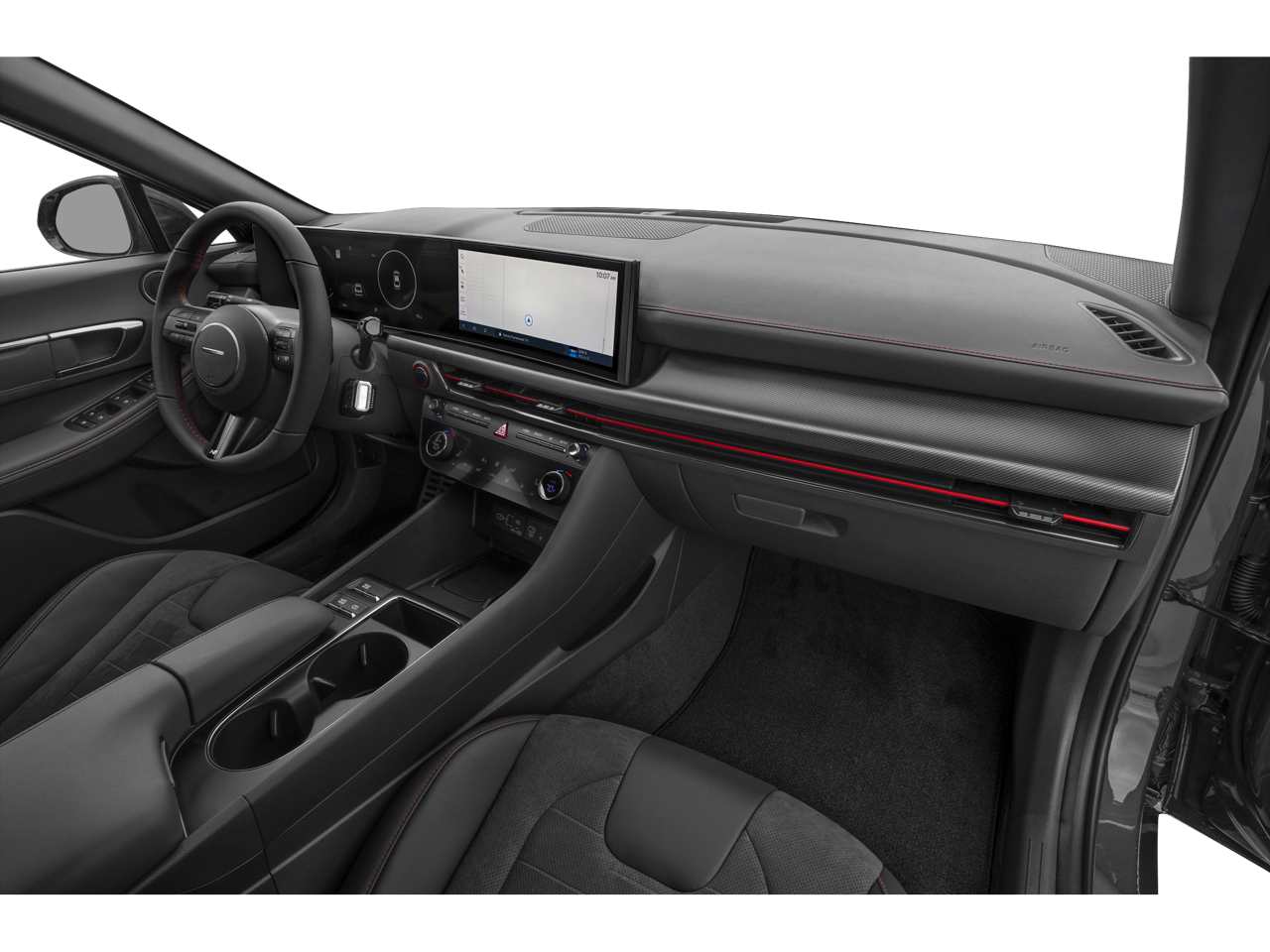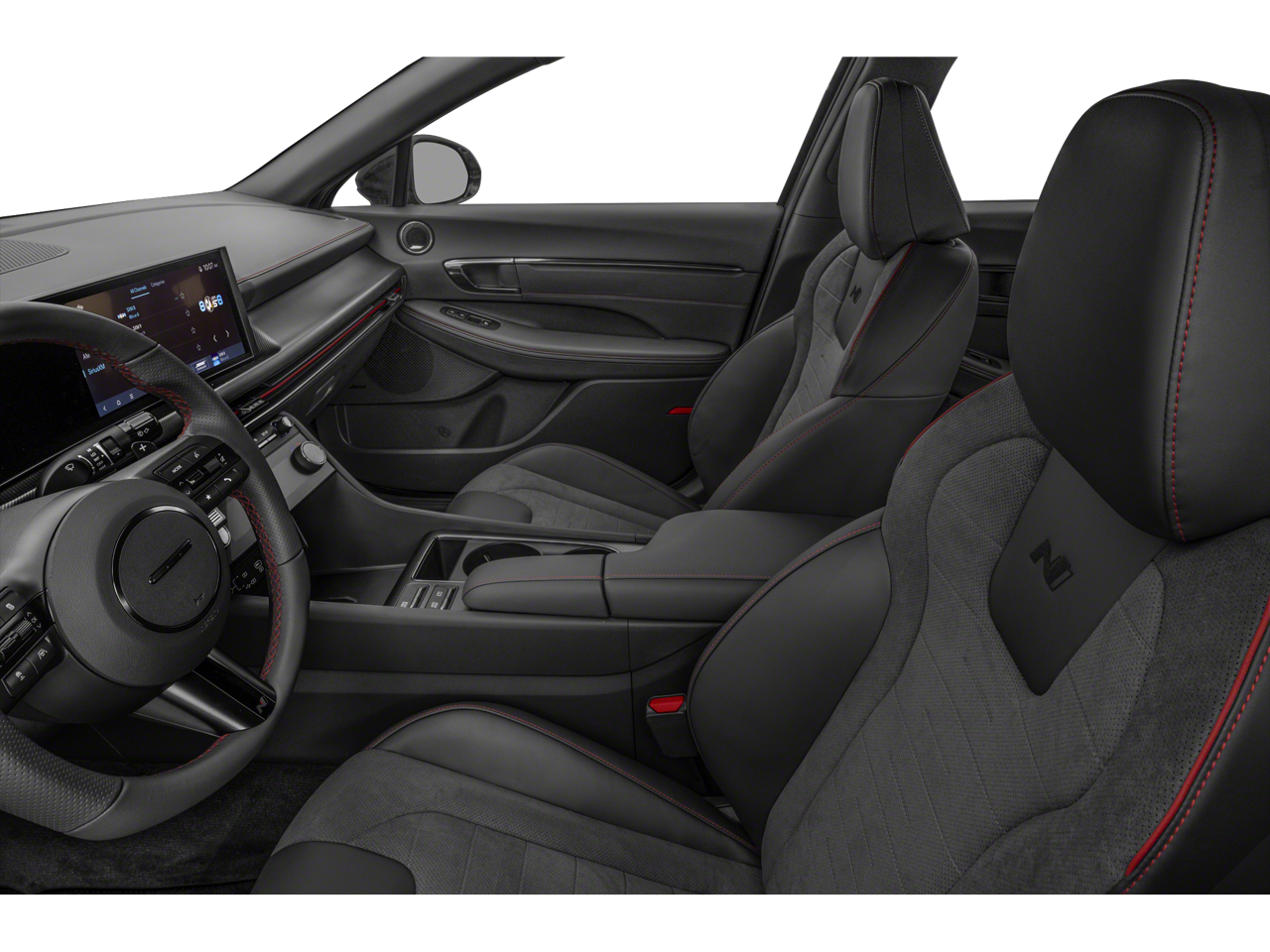 Black Artificial Leather, 12 Speakers, 4-Wheel Disc Brakes, ABS brakes, Air Conditioning, Alloy wheels, AM/FM radio: SiriusXM, Apple CarPlay & Android Auto, Auto High-beam Headlights, Auto-dimming Rear-View mirror, Automatic temperature control, Brake assist, Delay-off headlights, Driver door bin, Driver vanity mirror, Dual front impact airbags, Dual front side impact airbags, Electronic Stability Control, Exterior Parking Camera Rear, Four wheel independent suspension, Front anti-roll bar, Front Bucket Seats, Front dual zone A/C, Front reading lights, Fully automatic headlights, Heated door mirrors, Heated front seats, Illuminated entry, Knee airbag, Leather steering wheel, Low tire pressure warning, Navigation System, Occupant sensing airbag, Outside temperature display, Overhead airbag, Overhead console, Panic alarm, Passenger door bin, Passenger vanity mirror, Power door mirrors, Power driver seat, Power moonroof, Power steering, Power windows, Radio data system, Rear anti-roll bar, Rear side impact airbag, Rear window defroster, Remote keyless entry, Security system, Speed control, Speed-sensing steering, Speed-Sensitive Wipers, Split folding rear seat, Spoiler, Steering wheel mounted audio controls, Tachometer, Telescoping steering wheel, Tilt steering wheel, Traction control, Trip computer, Variably intermittent wipers, Wheels: N Line 19 x 8.0J Aluminum Alloy, Black Artificial Leather.